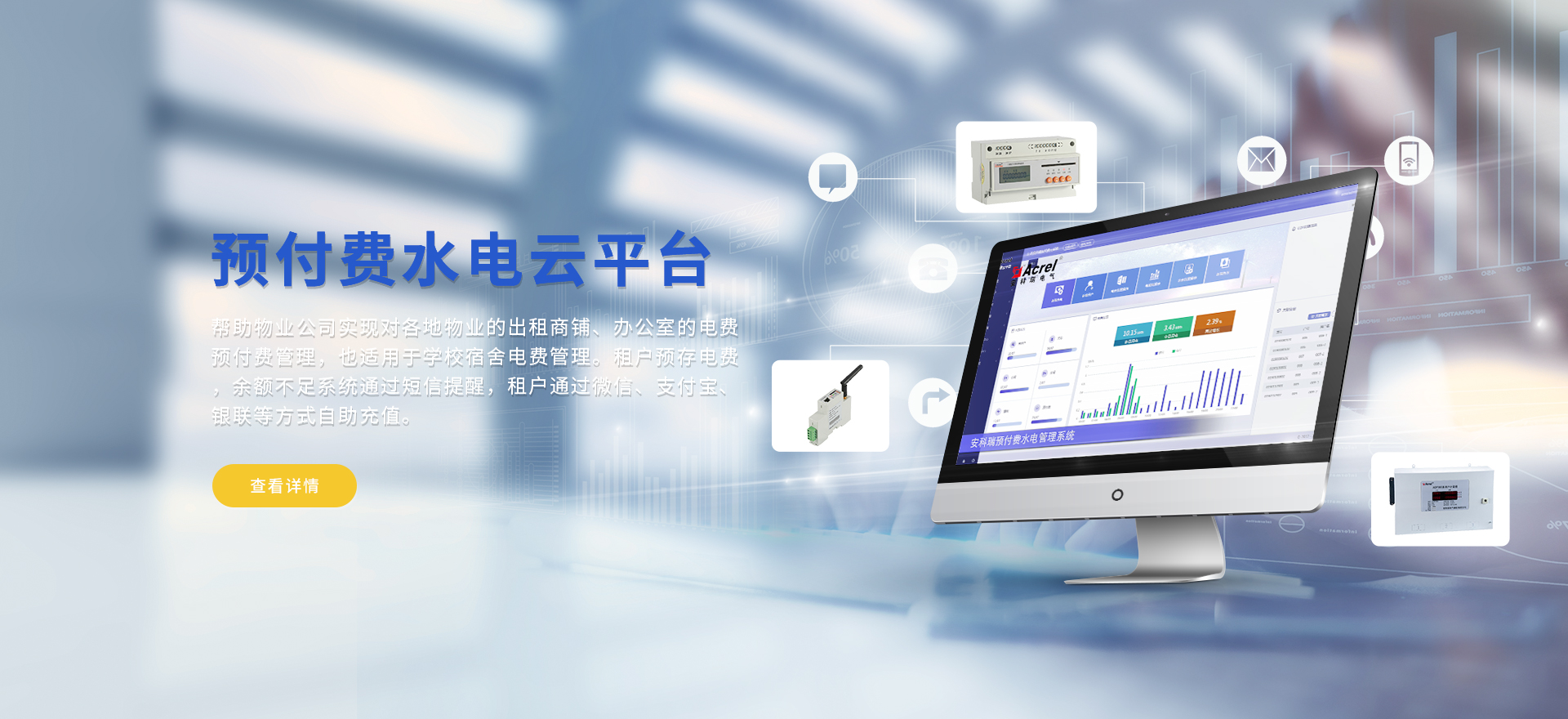 安科瑞提供的解決方案包括Acrel-EIoT能源物聯網云平臺變電所運維云平臺、安全用電管理云平臺環保用電監管云平臺、智慧消防云平臺能源管理云平臺、工業企業能源管控平臺、遠程預付費云平臺、餐飲油煙監管云平臺電動汽車/電瓶車充電樁收費管理云平臺、電力監控/無線測溫系統、電能質量治理系統、電氣火災監控系統、消防設備電源監控系統防火門監控系統應急照明和疏散指示系統、智能照明控制系統、醫用隔離電源絕緣監測系統等,幫助用戶實現能源智能化、可視化、精細化管理,提高用能效率和用能安全,為企業節能降耗和實現能源數字化建設提供數據服務。